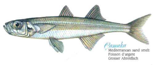 Gümüş türündendir. fazla derin olmayan sahillerin sıcak ve ılıman sularında, kumlu veya çakıllı bölgelerde sürüler halinde ve balık yavruları, kabuklular ve yumuşakçalarla beslenerek yaşar. Suyun tuzluluk oranı ve oksijen değerine uyum gösterir. Bu nedenle göllerde bile yaşayabilir. Boyu 10 - 12 cm. en çok 16 - 18 cm. olabilir. Suların bölgesel sıcaklığına göre Nisan - Eylül arasında ürer. Beyaz ve çok lezzetli etiyle ekonomik değeri yüksektir.